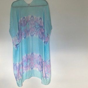 Beautiful light weight wrap. Shades of pink, blue, aqua,purple and white. One size fits all. Great over tank with shorts, jeans or dresses.