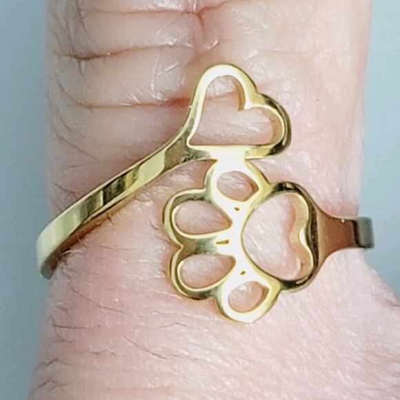 Wrap Adjustable Fashion Ring Paw Print And Heart Gold Ring