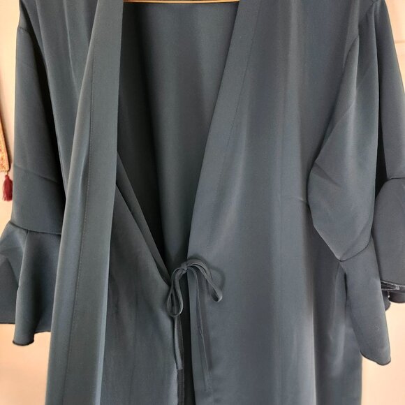 Enjoy wearing this dark green rap around. It is one size fits S/M/L