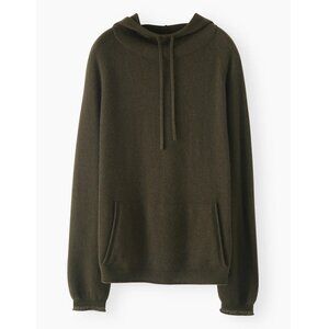 Wrap London - Oversize Cashmere Hoodie with Metallic Accent (on Sleeve), Forest Green, size US 8-10.