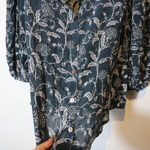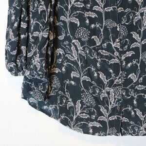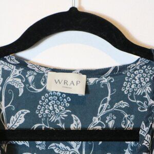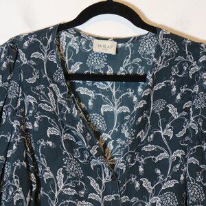 Wrap London 100% Silk Floral Button Front Blouse Womens 10 Blue Boho Peasant