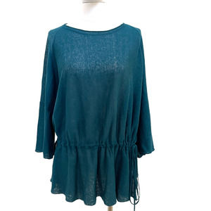 Teal Linen woven top made of a knit 100% linen falls so beautifully. A drawstring pullover top in a deep Teal green.