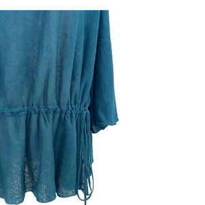 Wrap London Blouse Slouchy Top Drawstring Top 100% Linen TEAL sz US 12/14