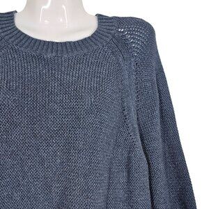 Wrap London Crewneck Pullover Sweater Women's Open Knit Boxy Blue Cotton 6/Small
