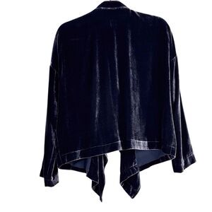 Wrap London Embroidered Cardigan Womens 6 Navy Blue Silk Blend Open Front Drape