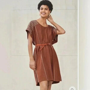 Wrap London Embroidered Cotton Jersey Kaftan Dress in Chili 100% Cotton Size 6
