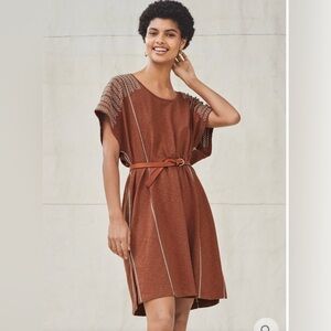 Wrap London Embroidered Cotton Jersey Kaftan Dress in Chili Size 8