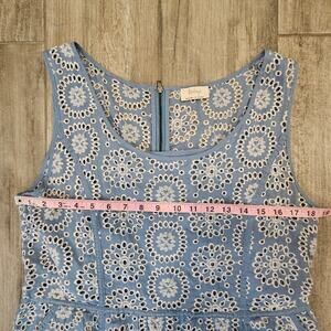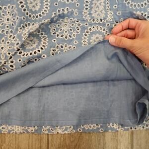Wrap London Eyelet Dress Womens 10 Blue White Midi Sleeveless Cotton Lined