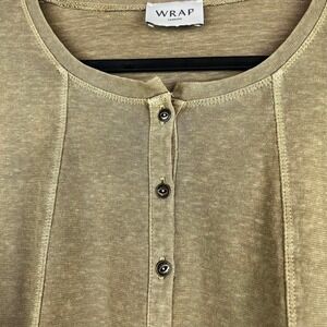 Wrap London Hemp Blend Henley Style Asymmetrical Elbow Patch Top Size 10