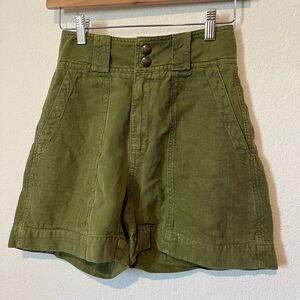 Wrap London Khaki Green Linen High Waisted Shorts Women's Size US 2 NWT