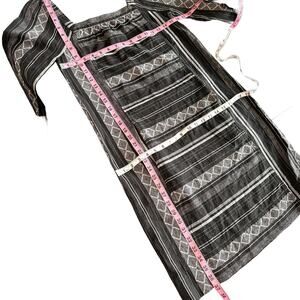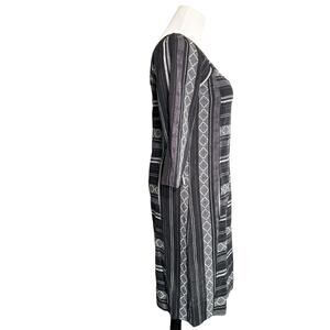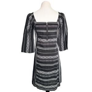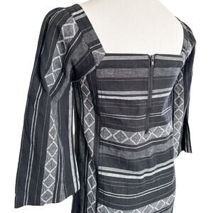 Wrap London NEW Linen Blend Square Neck Striped Argyle Shift Dress Black US 2