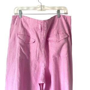 Wrap London NWTs Wide Leg Pink Trousers Linen Garment Dyed size 12 light magenta. Measurements laying flat waist 17 1/2 inches across and inseam 29 inches and rise 14 1/2 inches