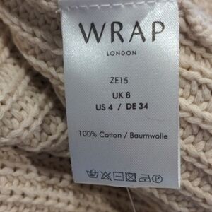Wrap London Open Front Warm Ecru Knitted Cardigan Sweater with Pockets size 4