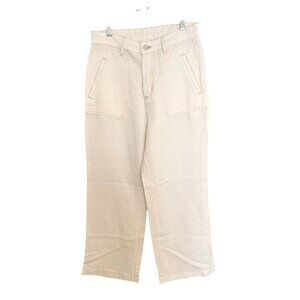Cheering coloured trousers in our lyocell and linen fabric which is lightweight and tailored. Contrast stitching highlights the pockets front and back and the cropped leg means you can show off your sandals.
