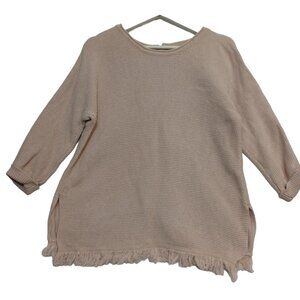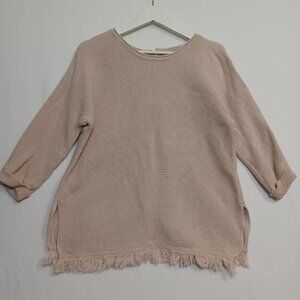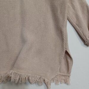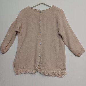 Wrap London Hally Knit Fringe Button Back Pullover Sweater