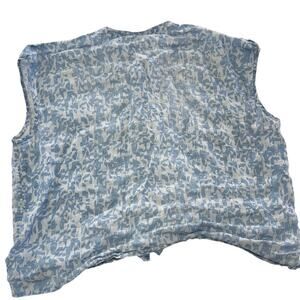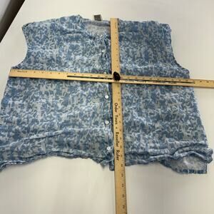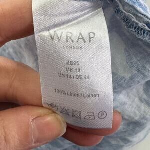 Wrap London Shirt Womens 14 Blue White Printed Button Up Linen Coastal