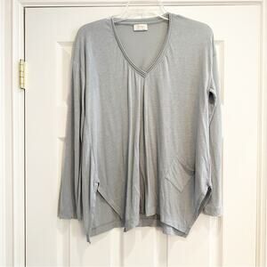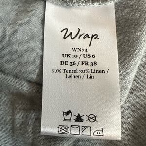 Wrap London V Neck Grey Top Long Sleeve Shirt Pocket Casual SIZE 6 Tencel Linen