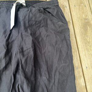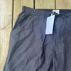 Wrap London Wide Leg Trousers Garment Dyed Linen in Black NWT Size 14