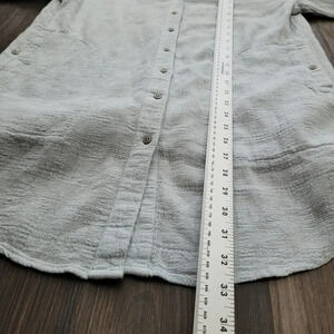 Wrap Women's Button-Up Tunic Top Size 2 Blue Solid Linen Long Sleeves V-Neck Lagenlook Pockets