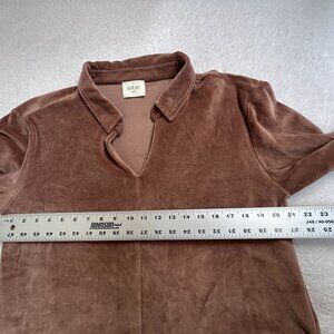 Wrap London Womens Velour V-Neck Collared Pullover Top Size 8 Brown Long Sleeve