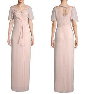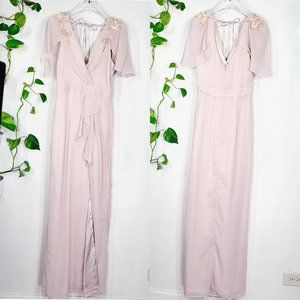 Wrap Long Dress 2 XS Pearl Blush Sequin Ruffle Slit Gown Wedding PARKER New$498