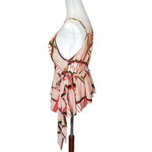 Wrap Shirt Tank Blouse Sleeveless Curvy Size XL 12-14 Womens Geometric Peplum Flowy Belted Casual Hippie Boho