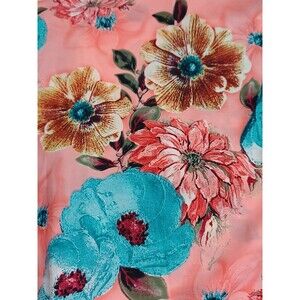 Wrap Skirt Reversible Women Floral Coral Blue Silk Blend Sz M.