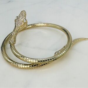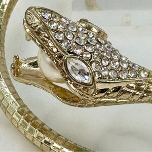 Wrap Snake Bracelet Pearl In Mouth Rhinestone Head Coiled Gold-tone Wrist or Arm