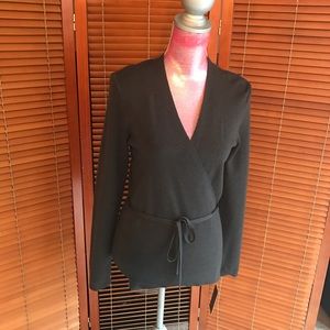 Classic is always in style. This wrap sweater is a must have piece for every wardrobe. Pair with long pencil skirt (shown) or favorite skinny or wide leg slacks. Overall good condition. Small hole at right shoulder (shown). 100% wool. Approximately 20 inches armpit to armpit. Compliments guaranteed‼️