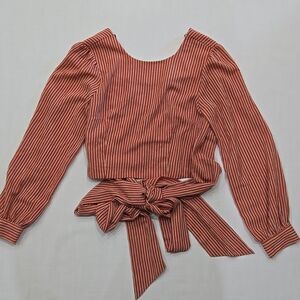 stripes, striped, elegant, romantic, feminine, tie waist, princess, bow, deep v, open back, crop top, cropped