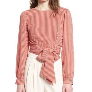 Wrap Tie Waist Striped Crop Top Blouse CHRISELLE X J.O.A. Elegant Feminine