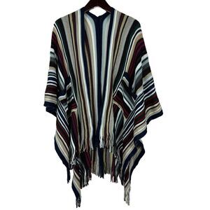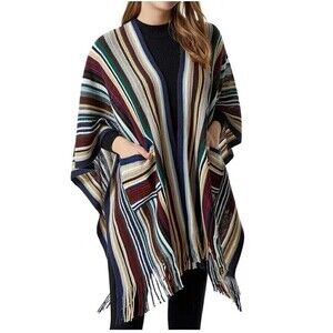 Wrap Winter Split Shawl Scarf Stripe Outside Pocket Cape Shawl Scarf OS