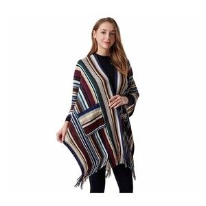 This beautiful shawl scarf is a must-have for any fashion-forward woman. With its eye-catching striped pattern and colorful theme, it's perfect for adding a pop of color to any outfit.