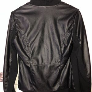 New condition wrap around jacket with zipper trendy design, fabric and leather like material size Medium. Just tried on