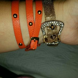 Orange wrap bracelet with goldtone hardware. Rear for stacking or alone!