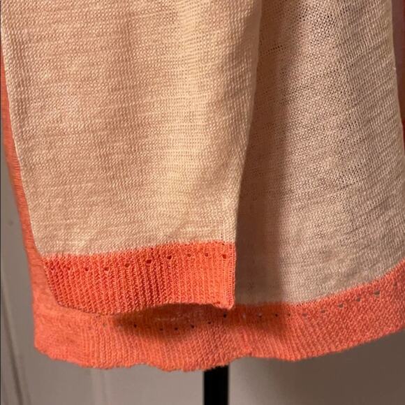 Coral and cream with small buttons on bottom - V neck. Lightweight and soft. Crossover vented back. Never worn. Excellent condition.