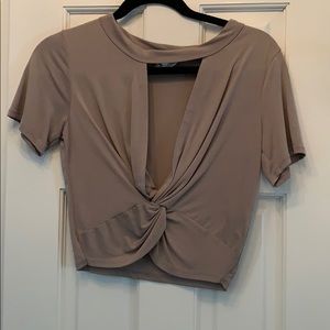 Sadie and sage wrap t shirt/top. Slightly cropped a taupe/light brown color.