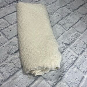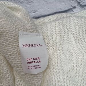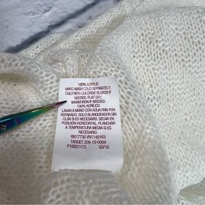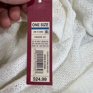 This is new with tags. Cream colored sweater material…It is approximately 30 inches wide and 74 inches long. There are two holes on each side for your arms if you want to use it more as a shrug. It comes from a smoke free home and I will mail out same day.