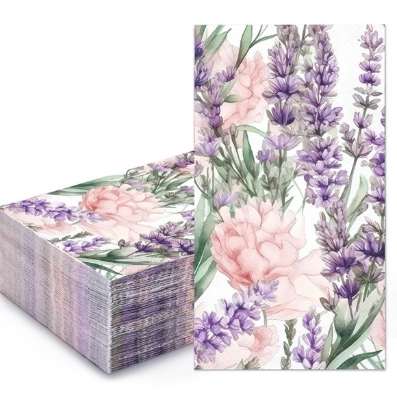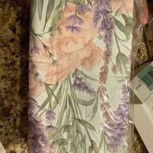 Elegant paper napkins featuring lavender and pink floral design. Perfect for parties and gatherings. Brand new, premium 3 ply hand towels, set of 50, decluttering my house. Bundle with other items to save on shipping.