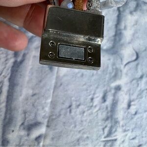 Beautiful real pearls, glass beads, leather and silver chains. This wraps around your wrist twice and then there's a magnetic closure.