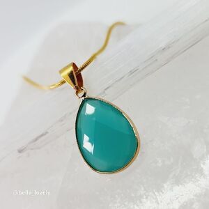 Wrapped Faceted Blue Jade Teardrop Necklace Gold Toned Jewelry Gift