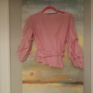 Wrapped blouse, 3/4 sleeves, 76% cotton, 22% polymate, 2% elastane