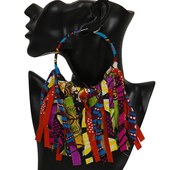 Large hoops wrapped in African inspired cloth.