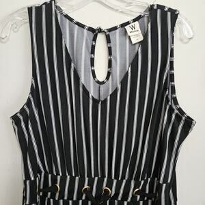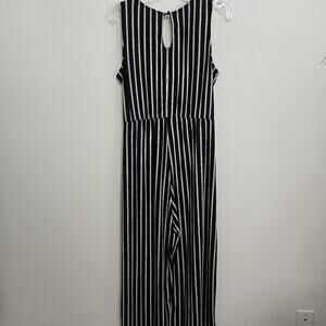 Wrapper Black & White Striped Jumpsuit sz PL Sleeveless V-neck Accent Waistband