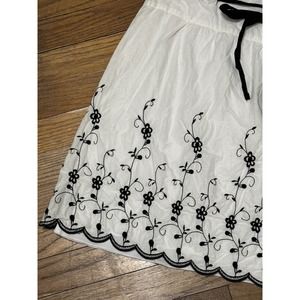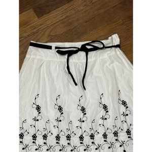 Wrapper Skirt Womens Size 11 White Black Floral Embroidered Lined Scalloped Hem