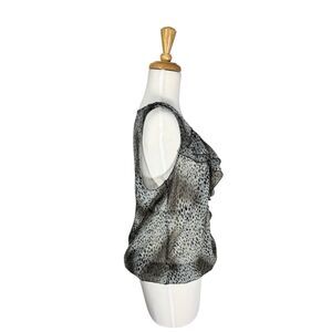 Wrapper Sleeveless Ruffle Front Animal Print Blouse Sz L Sheer Leopard