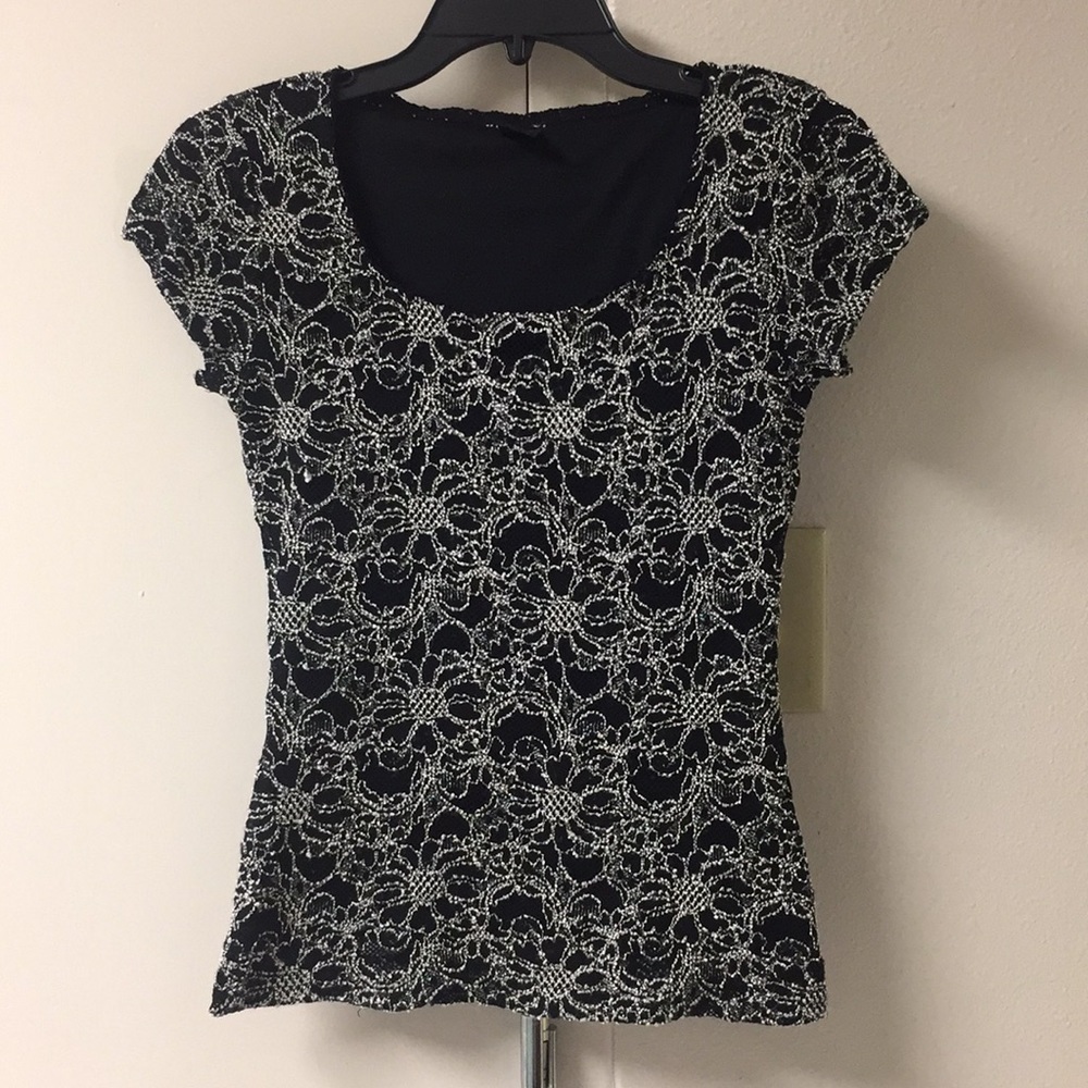 It’s a black top with white flowers embroidered all over it It’s in great condition only worn a couple of times
