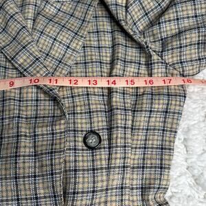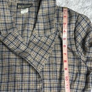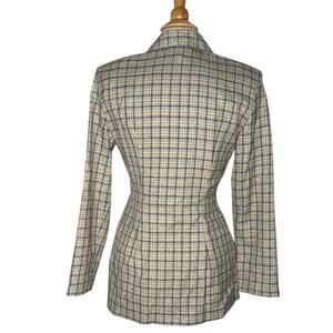 Wrapper Vintage Plaid Fitted Blazer Double Breasted Buttons Neutral Preppy O7