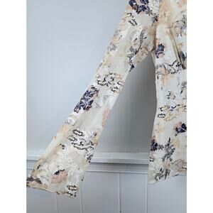 Wrapper Y2K Sheer Mesh Layered V Neck Bell Sleeve White Cream Floral Dragon Top