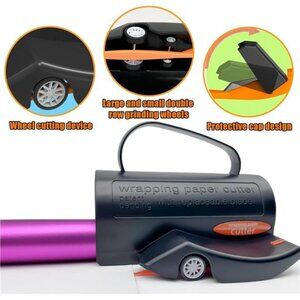 more Efficient more Safe Wrapping Paper Cutter: The Gift Wrap Cutter is wheel cutting structure design,Suitable for cutting rolls of any diameter,easily across your roll of wrap , very straight and flat cut.The hidden blade design makes the cutting process very safe. Just hold the handle and push gently to easily complete the cutting of the wrapping paper.
